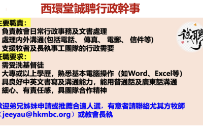 福音更新論壇 在瞬息萬變的時代中,香港教會在大環境的影響下正面對不少挑戰與考驗。然而,我們深信福音的大能從未改變,也堅信其更新和轉化的力量,藉着教會,將屬天的平安帶到城市的每一個角落。在逆境之中,我們更渴望看見眾教會彼此砥礪前行,在福音裡得力更新,忠心回應神在這城市的呼召。論壇內容涵蓋九個專題,從神學異象到實踐層面,盼能幫助教會在事奉與使命上得著更新與突破。 對象:致力推動教會更新的教牧同工或信徒領袖 講員:黃國倫牧師|CITY to CITY Taiwan 負責人、台北... Read More →