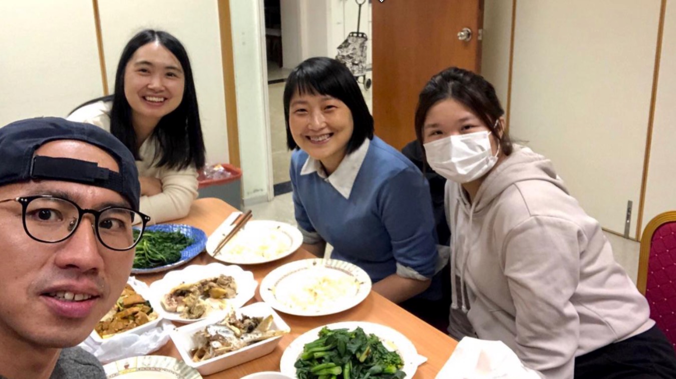 從2018年來到上水堂,我一直不願意參加團契,每次都悄悄地來,在結束禱告前溜走。直到2022年1月16日,我們下午出去派物資,回到教會後吃了一餐有青菜的晚飯,團契就這樣成立了。那時候還是疫情,政府要求減少一切不必要的外出活動,也不能夠多人聚集。很多團契都因此改為線上了,但是我們保持著一定社交距離的同時成立了一個4個人的團契,有湯梅,孫哲,Joycie和我。