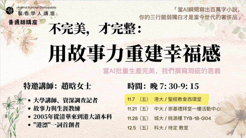 地點:香港聖經教會西環堂地下青少年房(皇后大道西419K博仕台地面,MTR港大站B1出口)